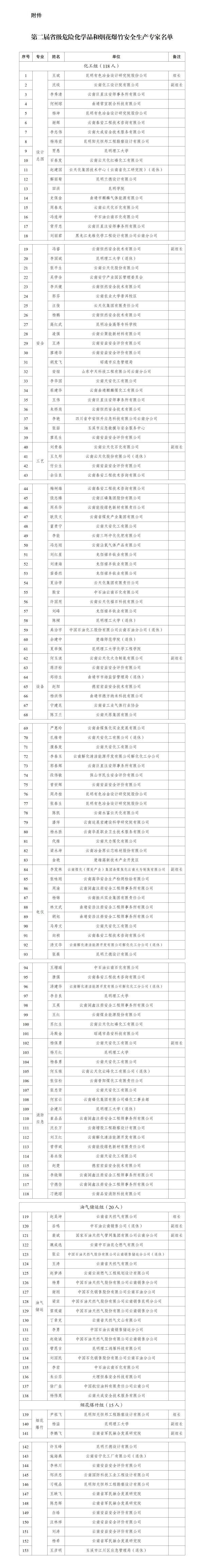 第二屆云南省危險(xiǎn)化學(xué)品和煙花爆竹安全生產(chǎn)專家名單公示