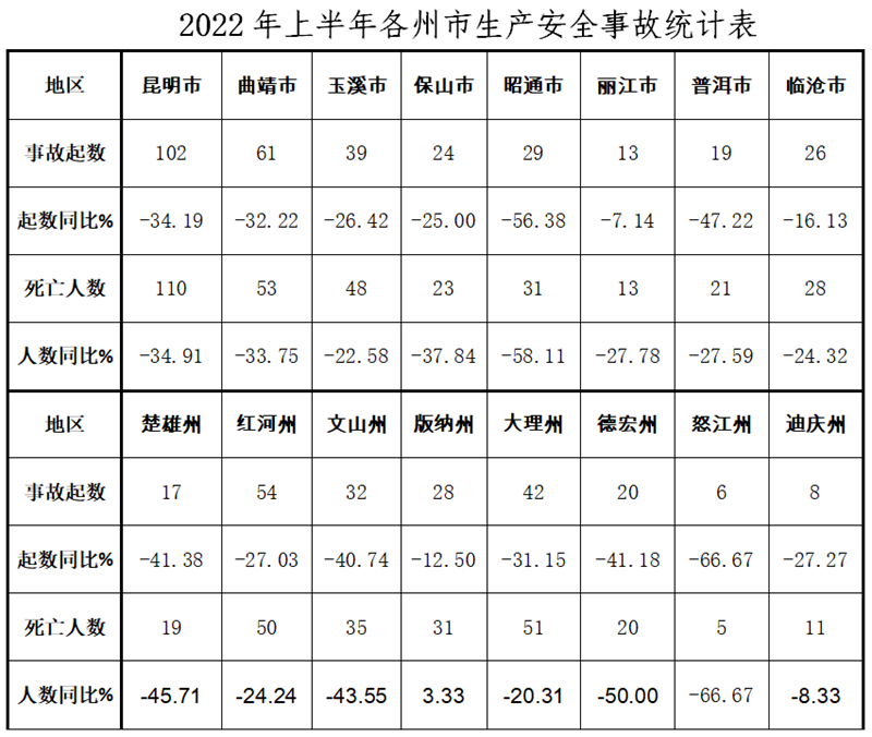 2022年云南省上半年全省生產(chǎn)安全事故情況